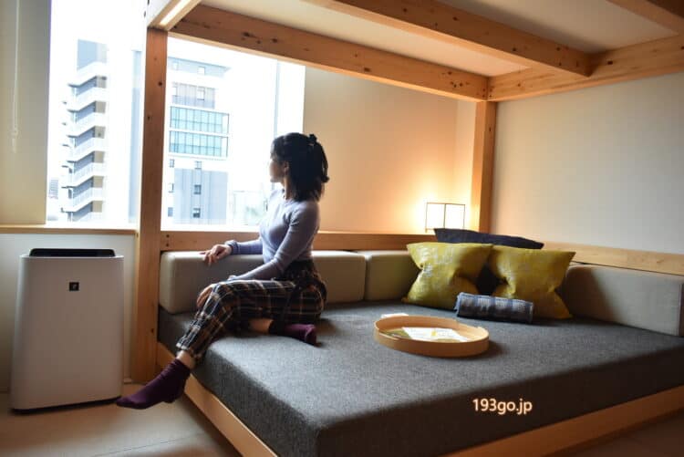 ホテルの部屋では海外と同じように靴を履いたまま過ごすところが多いけど、畳張りでこれは寛げる!和モダンで外国人も喜びそうな雰囲気。