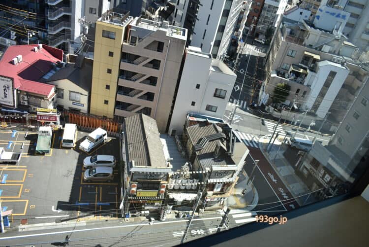 窓の外を見下ろすと、のれん街。夜はあそこに繰り出そう!