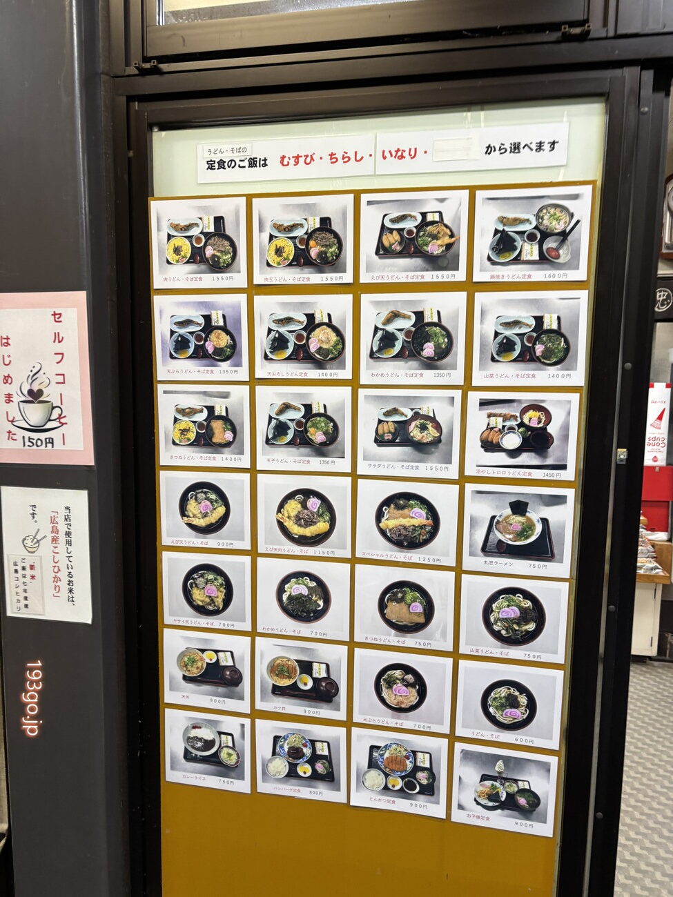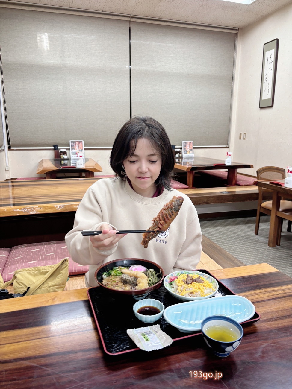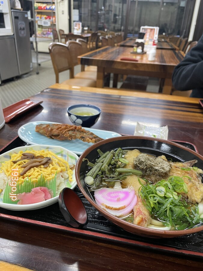 食堂でそば定食!おにぎり、ちらし寿司、お稲荷さんの何れかを選べ、ちらし寿司に!