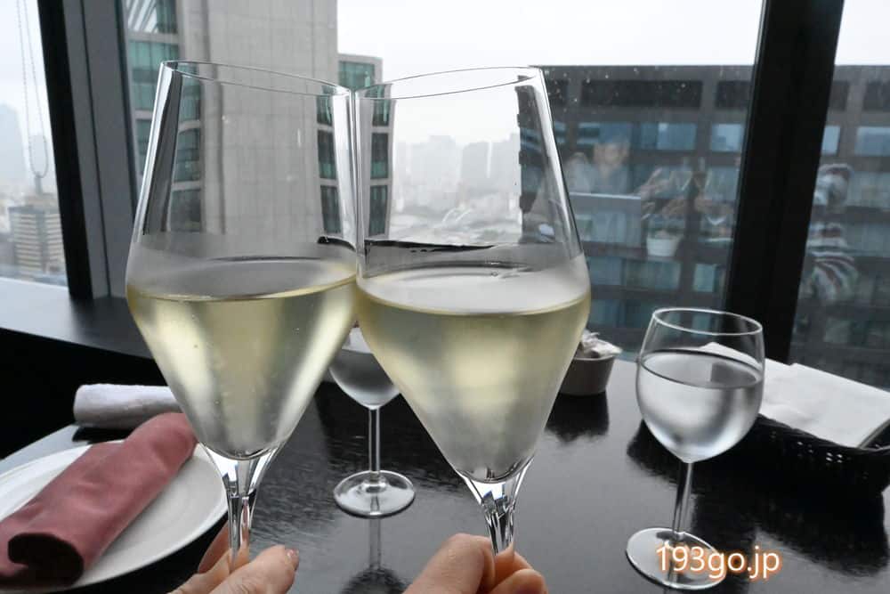 食前酒、スパークリングワインで乾杯。