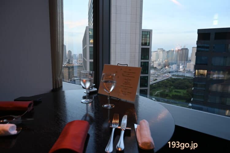 ホテル内の作品モチーフのディナーへ!眺めが良いシックな空間