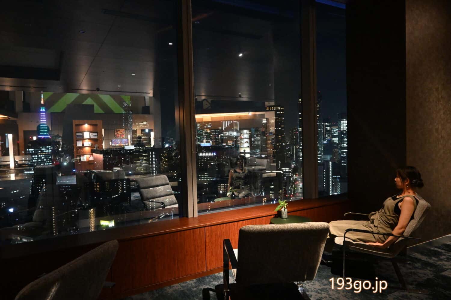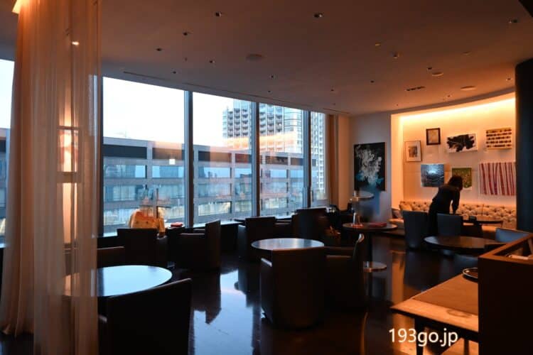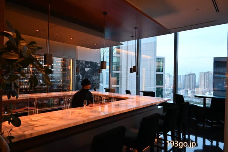 レストランを出ると、宿泊者専用ラウンジのガラス張りの大画面から望む贅沢な夜景。