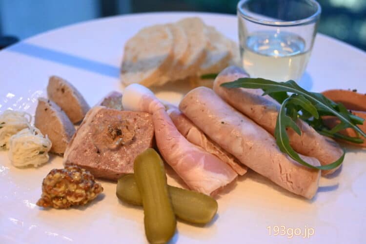 レバームース、ハム、パテドカンパーニュ、リエット、ピクルス。