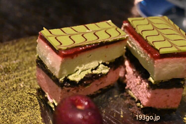 最後は、展示作品「マウンテン・ストライプ 60 散歩/森 1/2(井内宏美作)」モチーフのデザート。