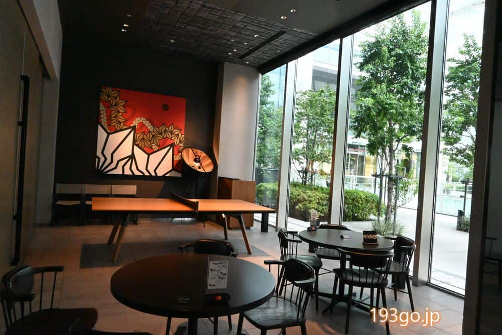 コンセントが完備されたカウンター席もあり、宿泊の際の待ち時間に活用的。
