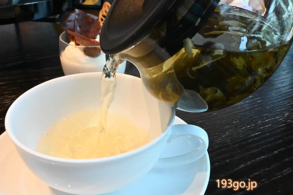 気になるお茶をおかわりしながら、ホテルアフタヌーンティーを満喫。