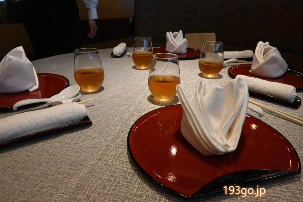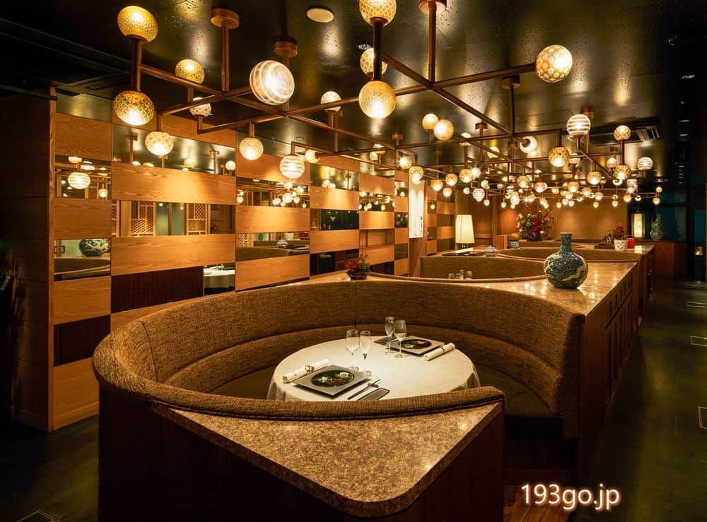 店内は、美しい左官壁や木目の市松模様、江戸切子の照明など、中国文化の長い伝統と和モダンを融合させたインテリアを施し、ゆったりと寛ぎながら食事が楽しめる。