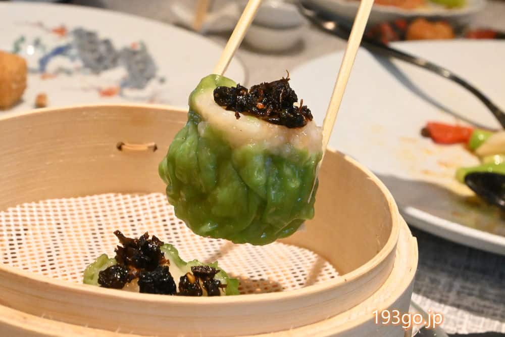 車海老を使った海老餃子。ツルンとした透明な皮で包んだ伝統的な点心