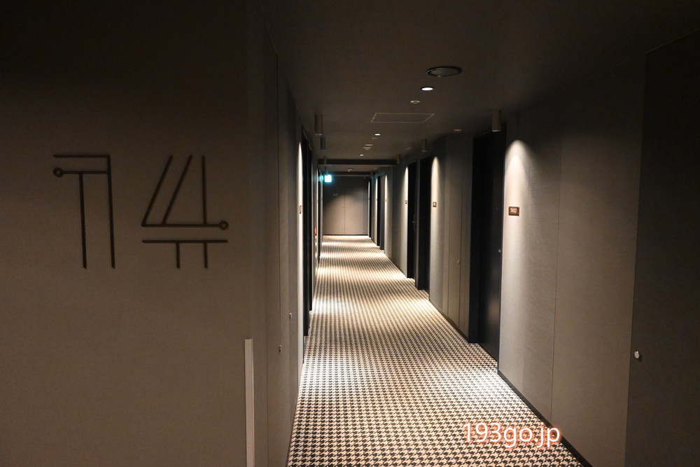 14階の客室フロアへ。ホテル内全体がダウンライトで暗め。