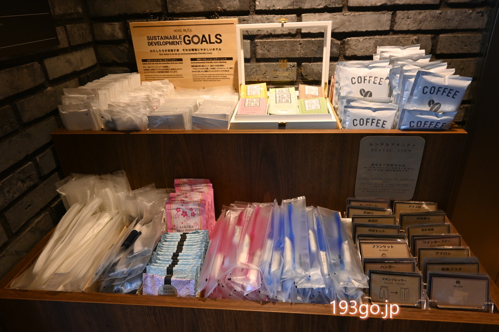 2階フロントでチェックインをしたら、必要なアメニティをピックアップ。