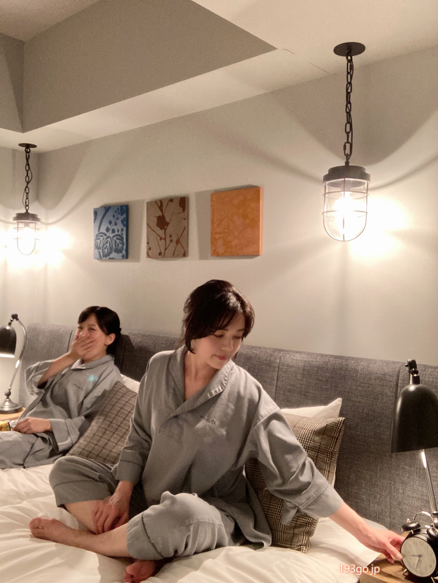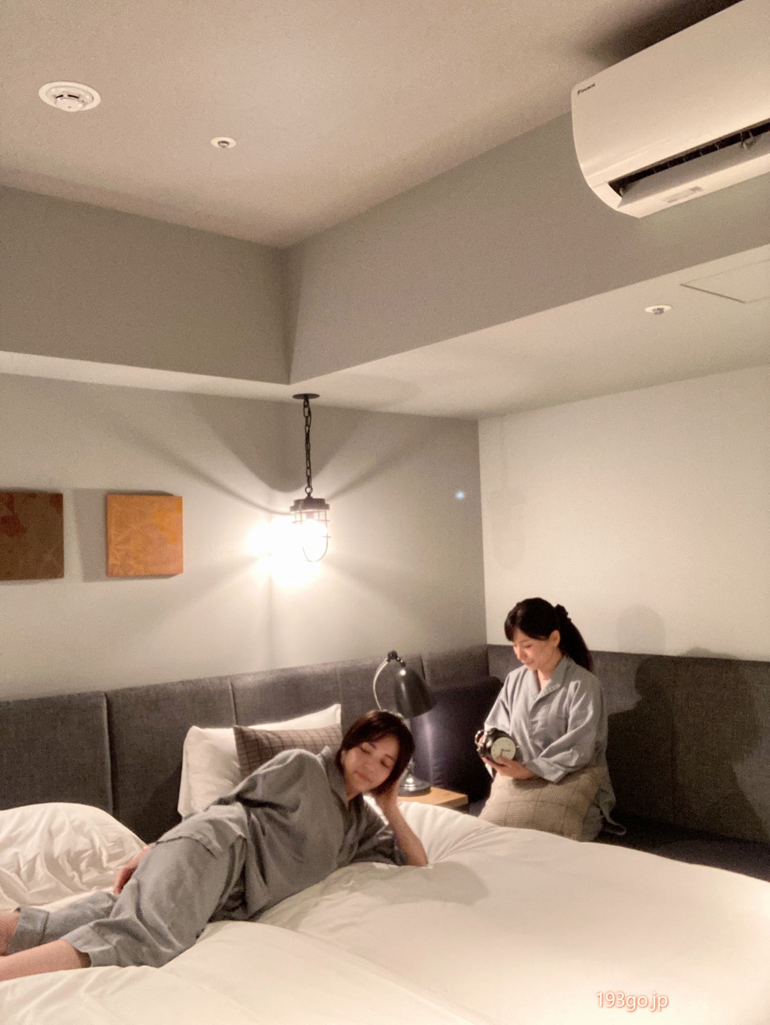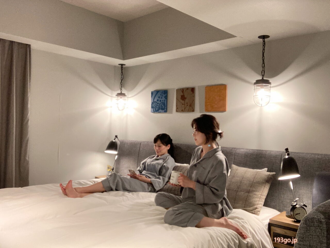 ベッドの両脇にライトが設置されおしゃれな空間。