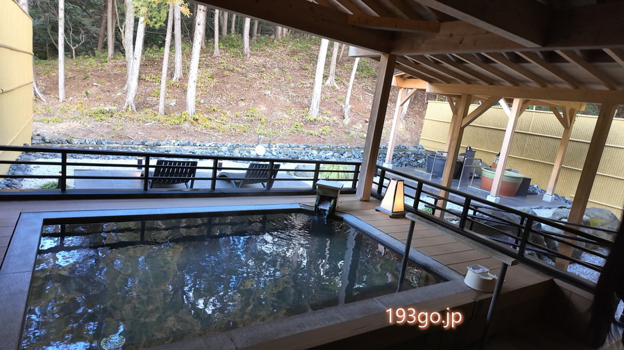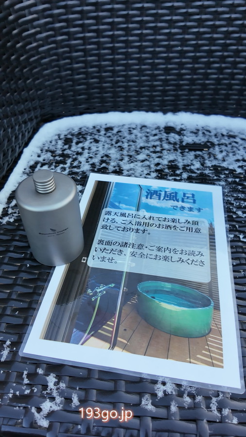 テラスに信楽焼の陶器風呂が設置されていて、冬期(12月〜2月)は天然温泉が楽しめる。