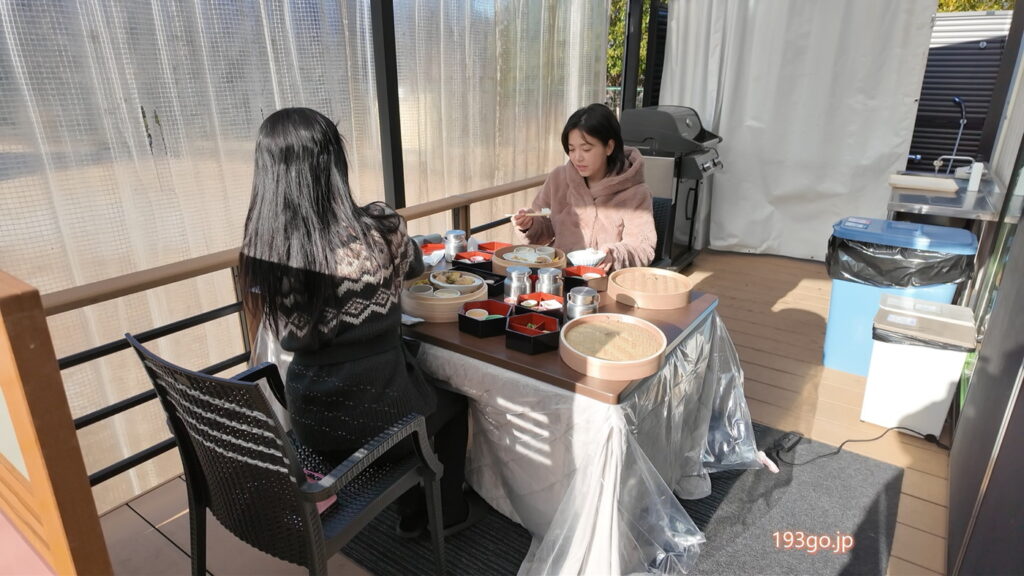 冬ならではの外こたつ朝食や焚火、薪サウナを満喫。