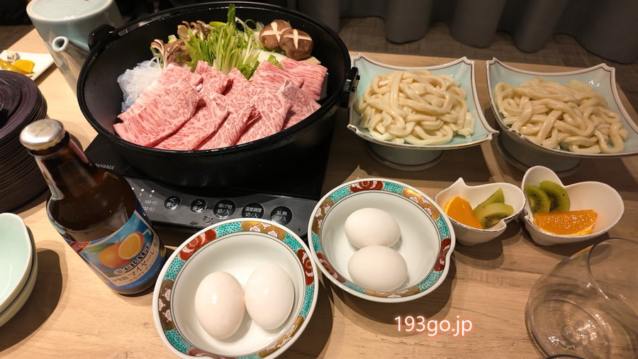 夕食の時間になると、お宿の方が食材を部屋まで運んでくれて