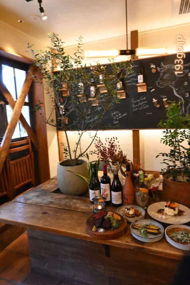 千葉県木更津市にある「KURKKU FIELDS」で水牛を育てている日本で唯一の水牛モッツァレラ職人・竹島英俊氏の作るモッツァレラや、北八ヶ岳のボヌムテッレの化学農薬・肥料を用いずに育てられたカラフルで甘みの強い野菜、アニマルウェルフェアに配慮した環境で育てられた信州プレミアム峯村牛のステーキなど、オーナーとスタッフが自ら足を運んで見つけてきたユニークな食材の特性を最大限に引き出した調理で提供。