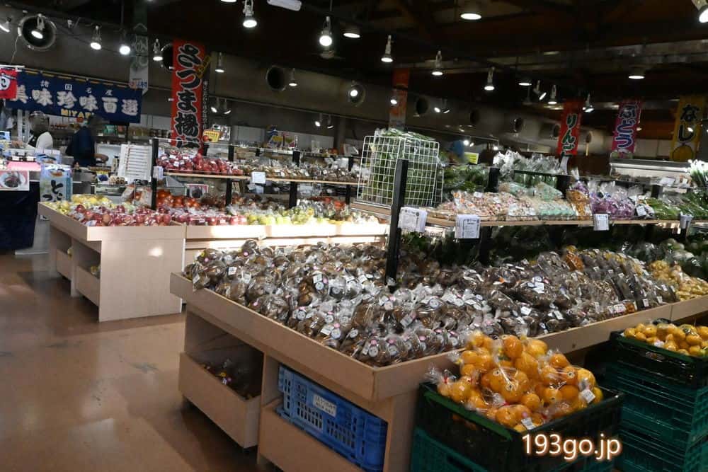 レストランや温浴施設は10時開店だけど、入口はいったところにあるマルシェ・あおぞら館は8時半に開店したので起きたら行ってみると、農産物やお土産、食材、パン、お惣菜などがギッシリ。