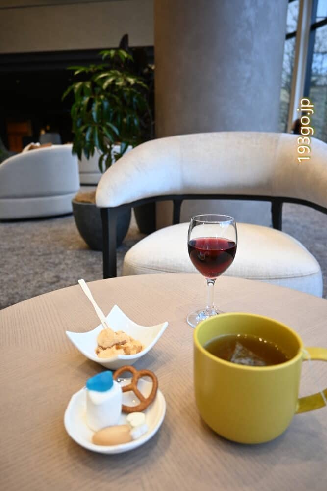 イブニング(15:00~18:00)開放感あふれるラウンジでスパークリングや甲州ワイン、信玄餅も