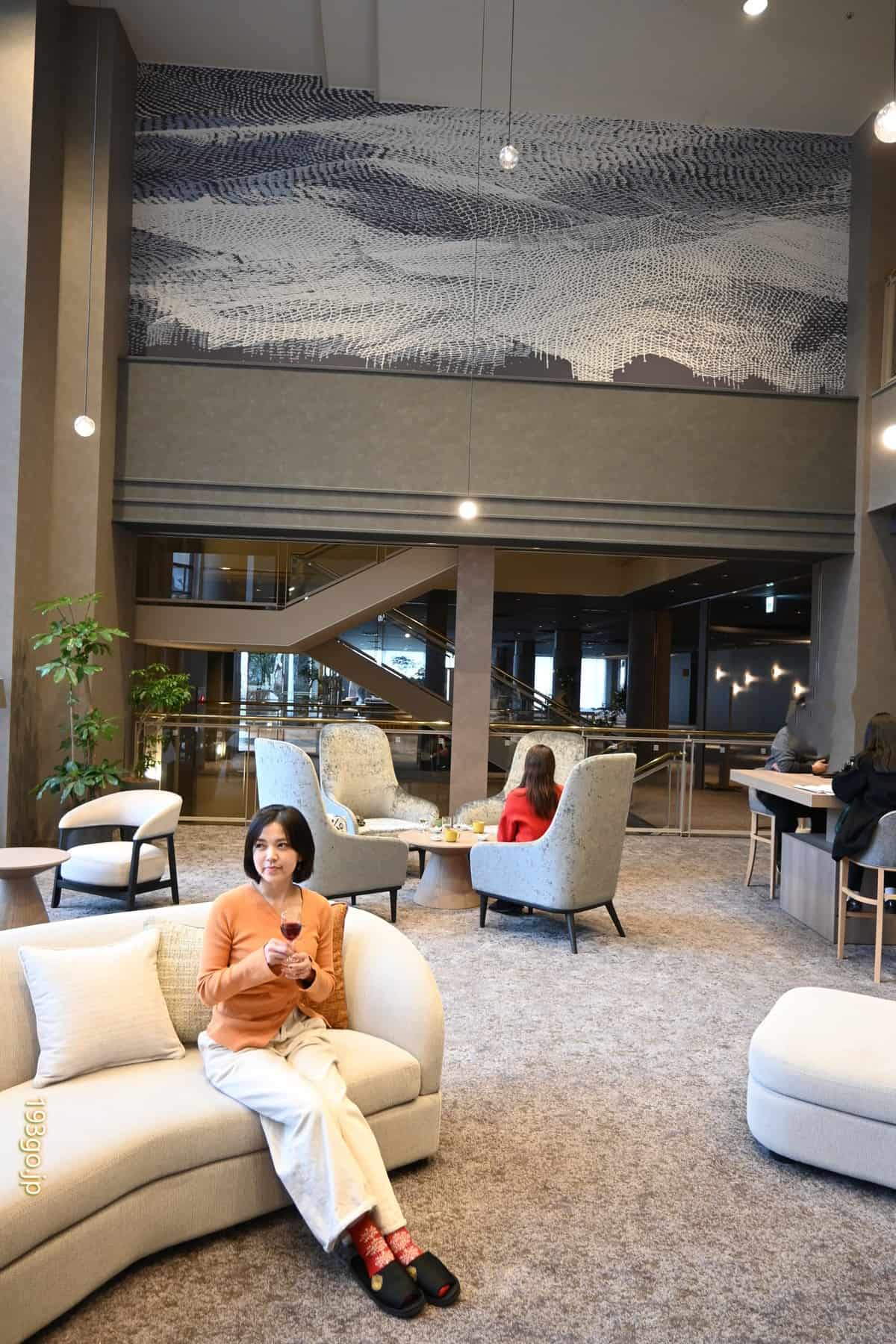 ロビーフロアにあるラウンジは高い天井に広い窓で開放感あふれる。