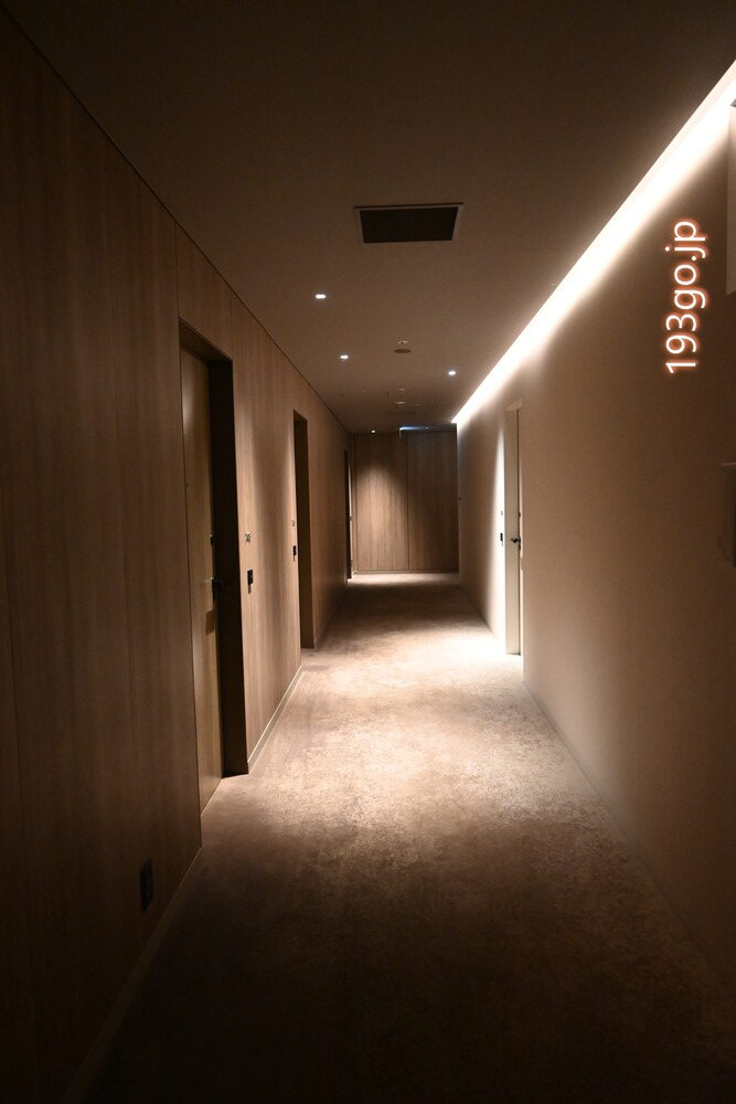 間接灯を用いたフロアにフカフカの絨毯が敷かれ、廊下からラグジュアリー感漂う。