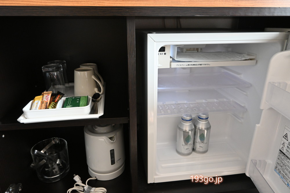明るく清潔感があり、街を見下ろせる大きな窓が心地よい。ビジネスでも観光でも使いやすい機能的な客室で、加湿機能付き空気清浄機やお茶セット、ナイトウェアなどのアメニティも充実していた。