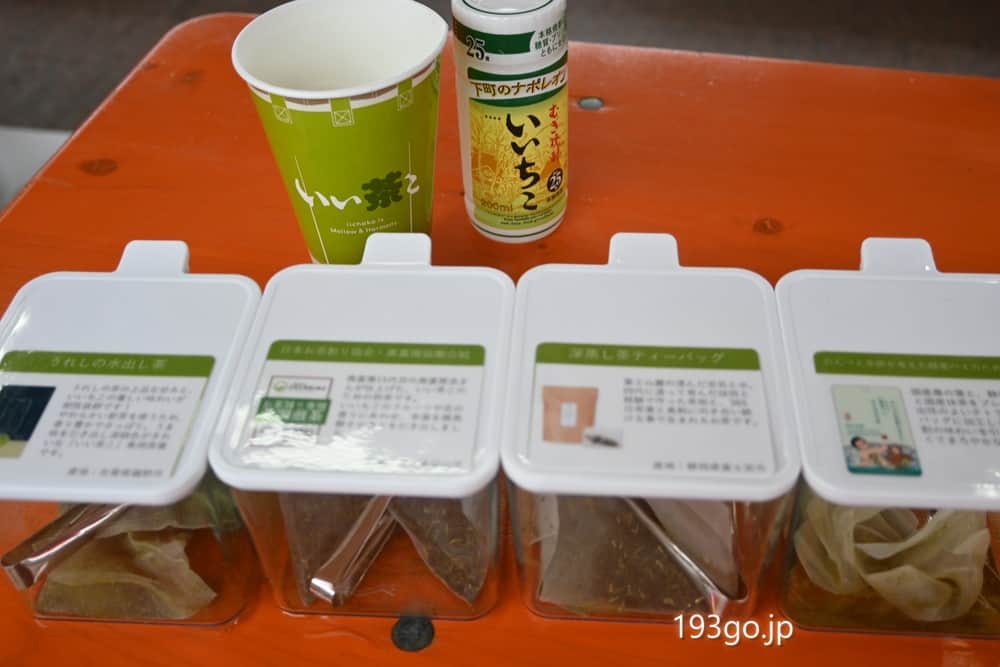 会場では、いいちこカップ(25%)200ml1本と、4種類のティーバッグ(お茶)から2種選び、2杯のいい茶この飲み比べが楽しめる。