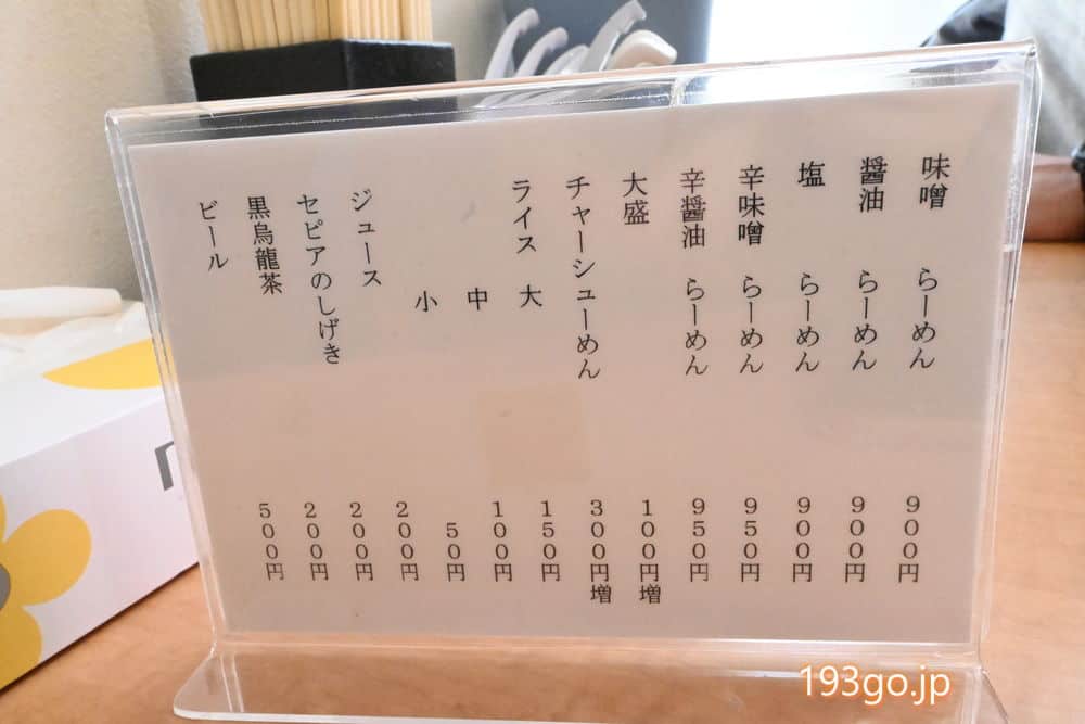 それぞれ大盛りは+100円、チャーシューめんは+300円