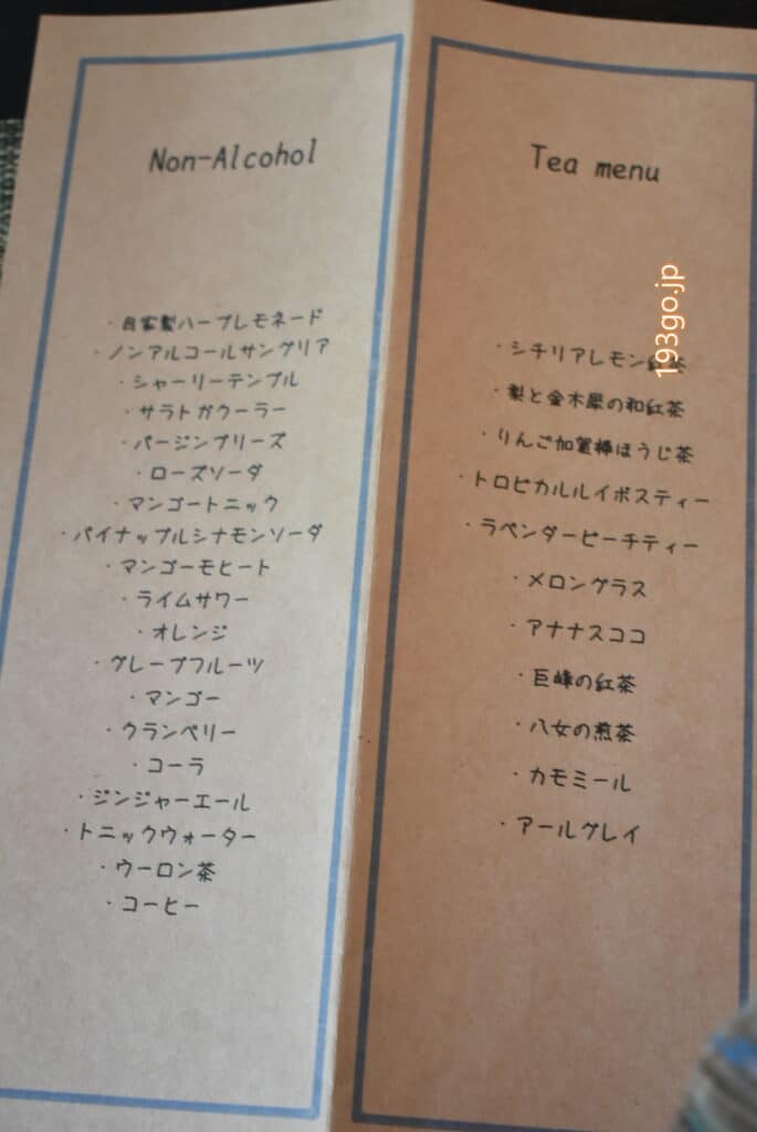 3時間ノンアルカクテル、ティーなどがお替り自由