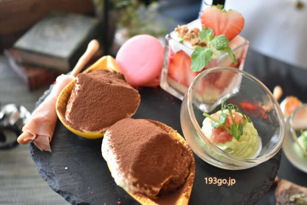 ティラミスにシフォンケーキ、ショートケーキ、いちごのマカロンにハイビスカスゼリー…