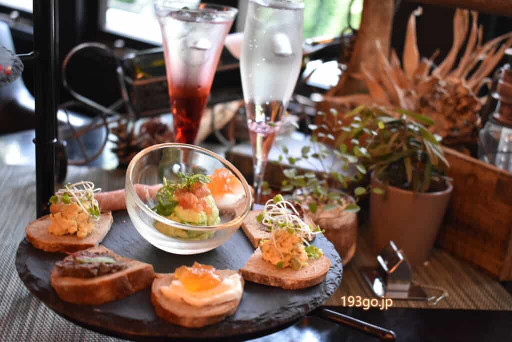 甘いものの他、セイボリーは自家製ライ麦パンの3種のブルスケッタ、無添加生ハムとグリッシーニ。