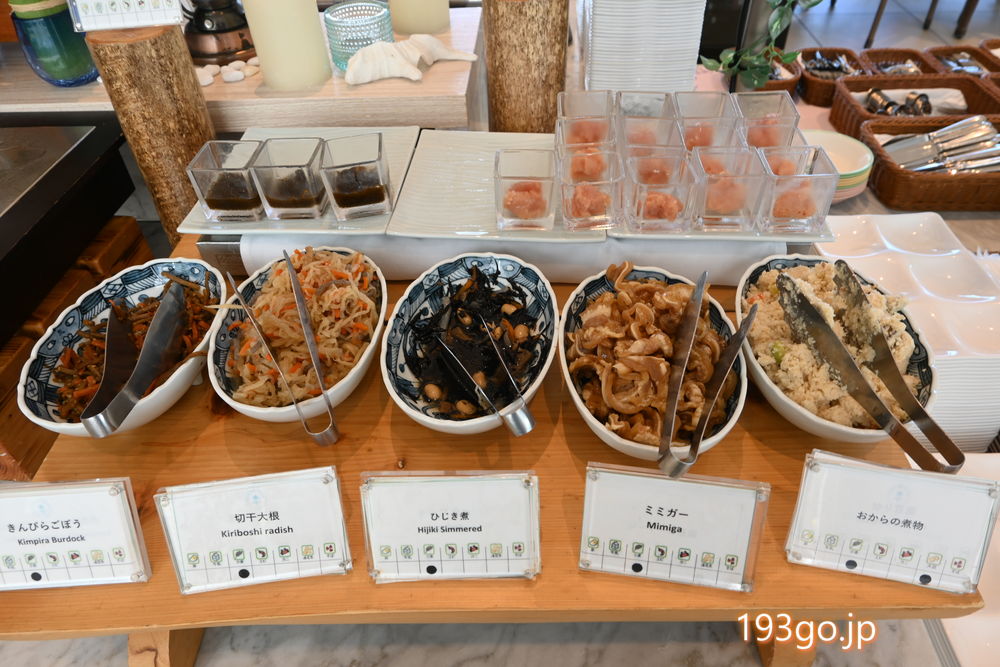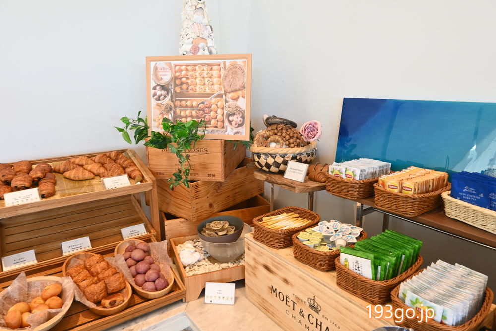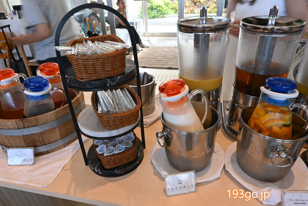 その他、サラダにフルーツ、デザート。ドリンクはコーヒーマシンとティーバッグが用意され、さんぴん茶やシークワーサージュースにアセロラジュースなどのソフトドリンクも充実。