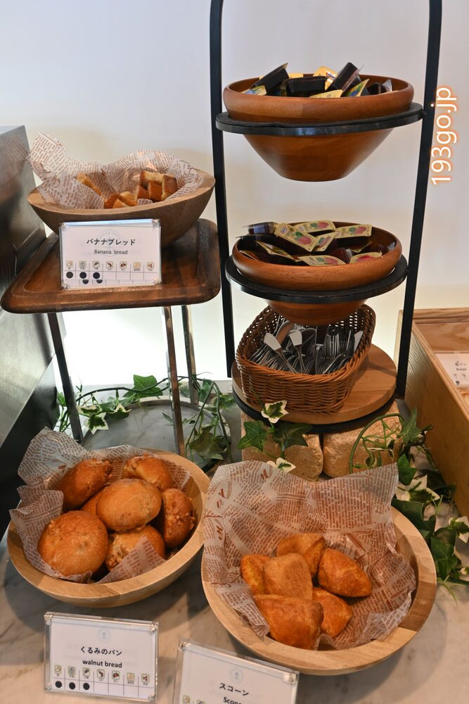 パンはデニッシュにクロワッサン、クロックムッシュにピザ、塩パン、チーズパン、紅いもパンなどミニサイズで多種類。サクサクのスコーンは特にお気に入り。