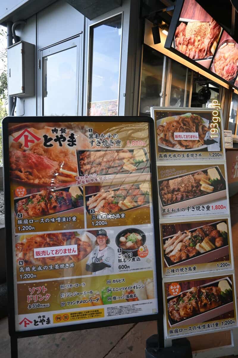 「肉飯 とやま」のメニュー<場所:1塁側 提灯横丁>