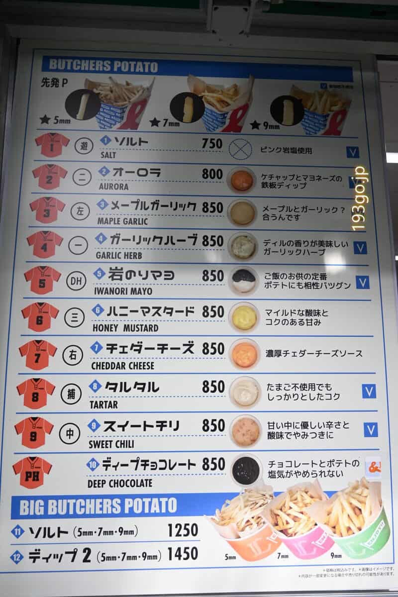 ポテトとチュロス「& Butchers(アンドブッチャーズ)」のメニュー<場所:1塁側 固定売店>