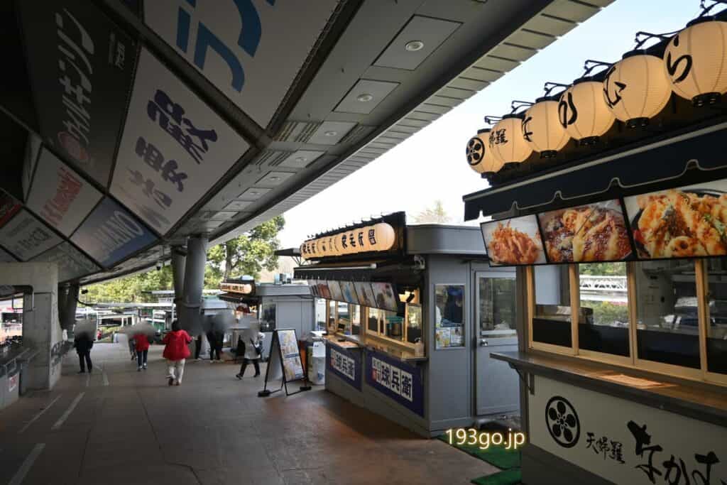 ドームの外側を沿うように飲食店が立ち並ぶ。