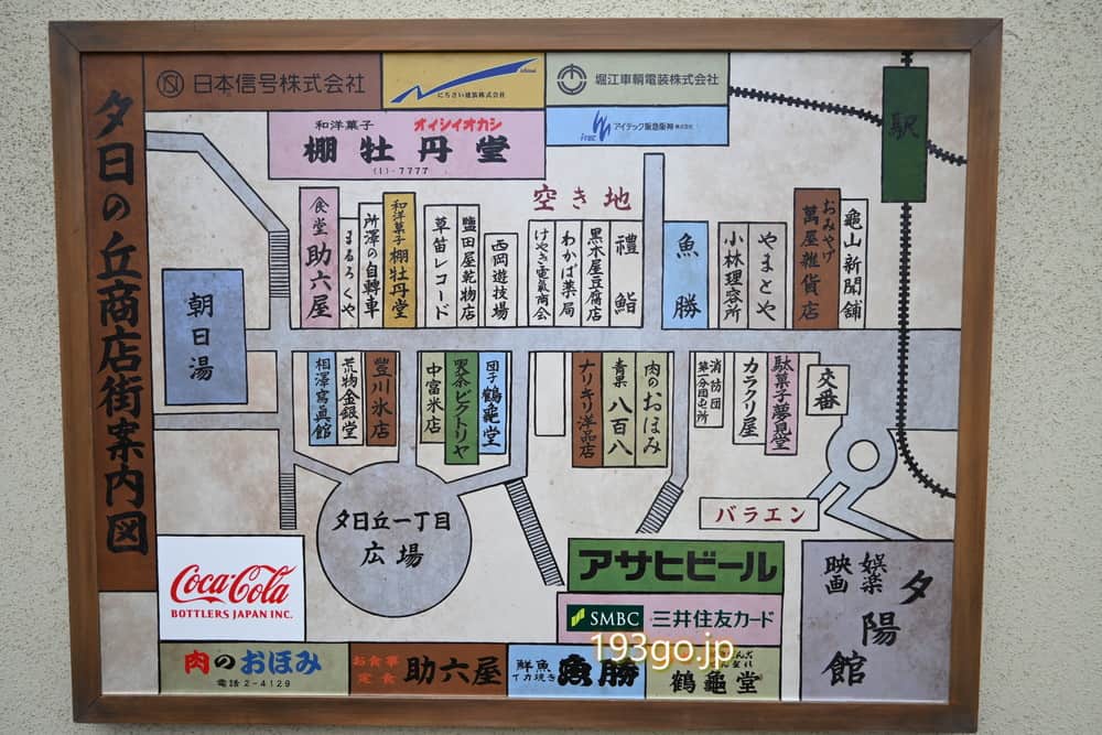 入り口側にある「夕日の丘商店街」を歩いてみると、レトロな看板の商店が軒を連ねる。