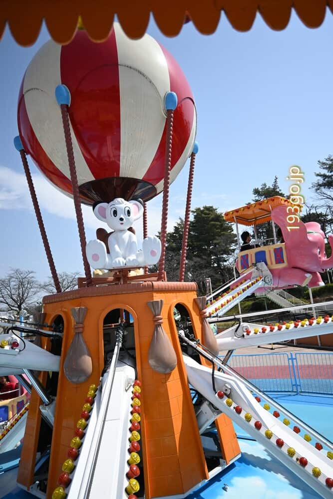 コーヒーカップ、メリーゴーランド、空飛ぶゾウといった、昔懐かしい乗り物が満載。