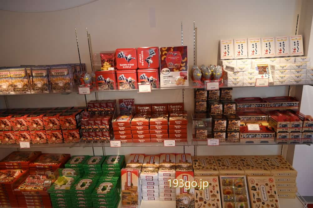 オリジナル土産にレトロなお菓子、駄菓子が並ぶ