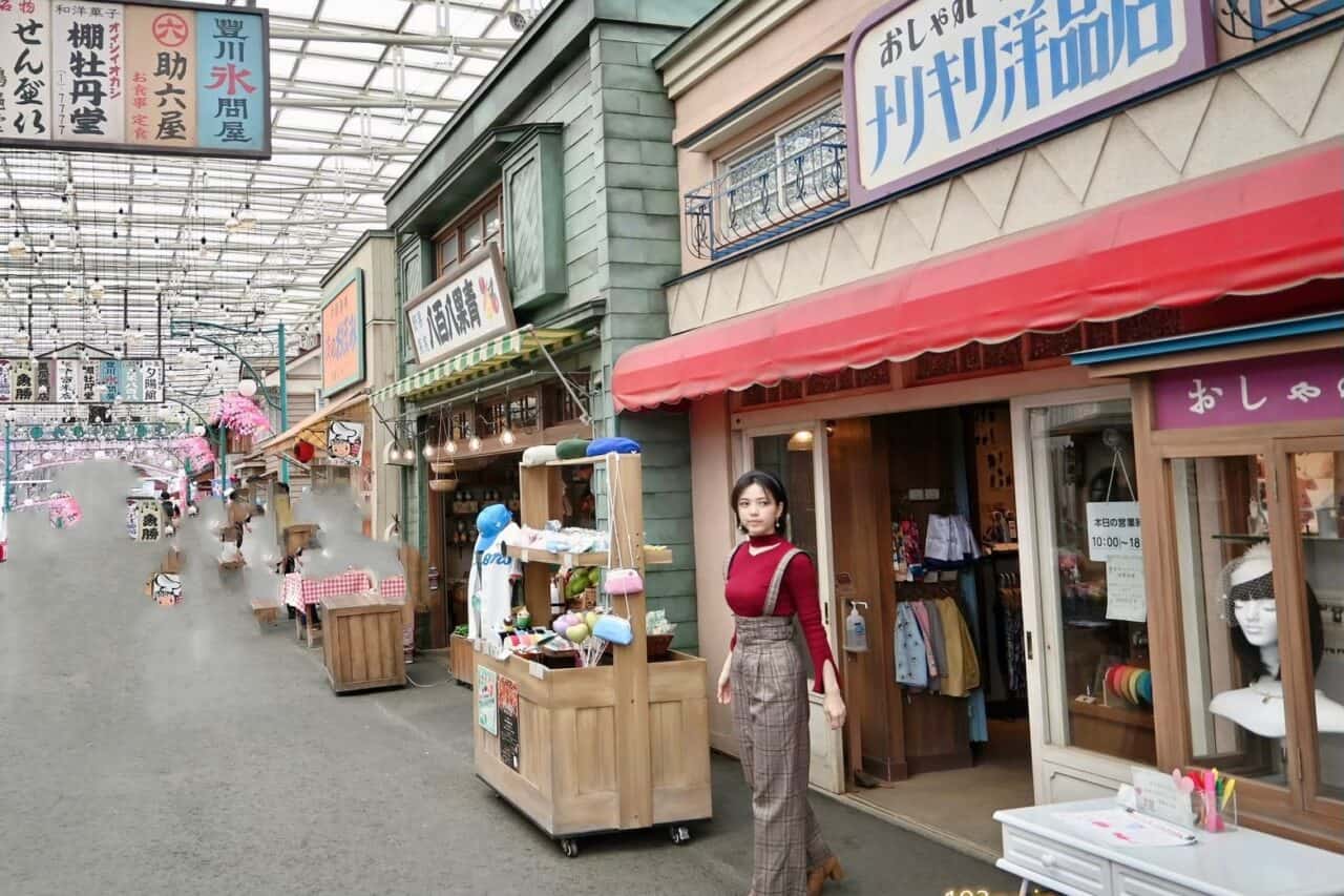 たばこ屋、理美容室、八百屋、新聞、レコード店などは実際は中には入れず、撮影スポットに。