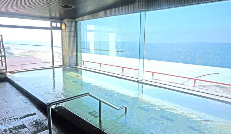 大浴場へ!目の前に海が広がる贅沢ビュー 熱めの湯でサッパリ!