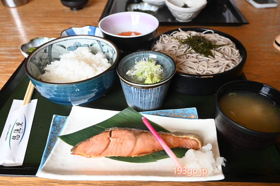 「悠流里」で鮭のランチをして、「冨士美園」で北限のお茶体験。