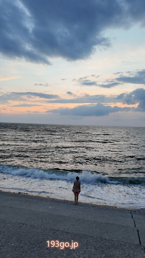 県内屈指の透明度を誇る「笹川流れ」の海水に浸かって、山形方面へ向かう。
