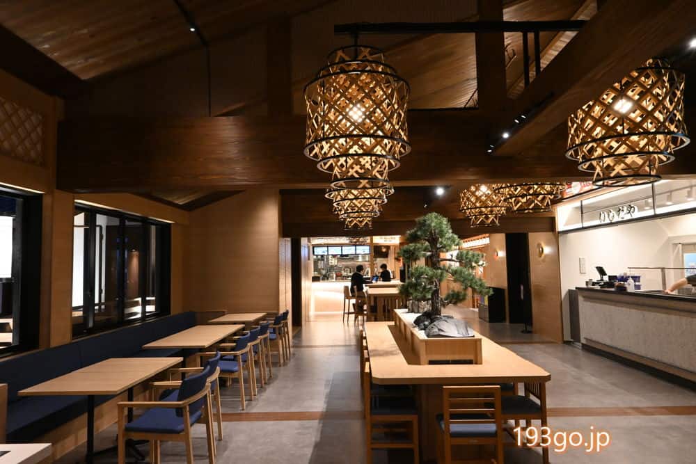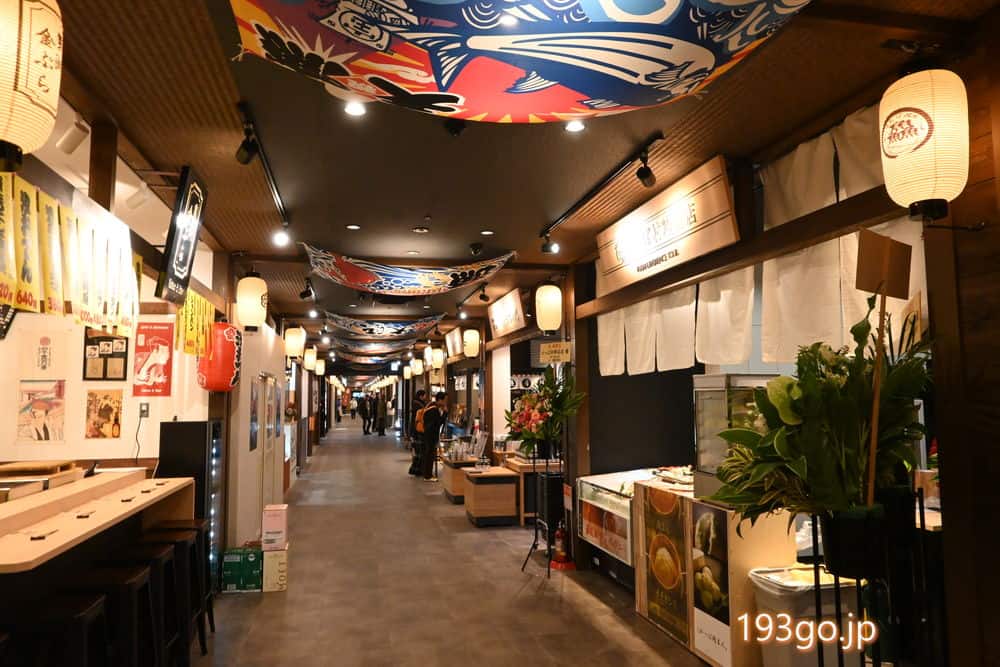 江戸時代、寿司は屋台で気軽に食べられるものだったという歴史的背景を元に、中央に寿司のフードコートが設けられ、手軽に多様なジャンルのお寿司を楽しめる。