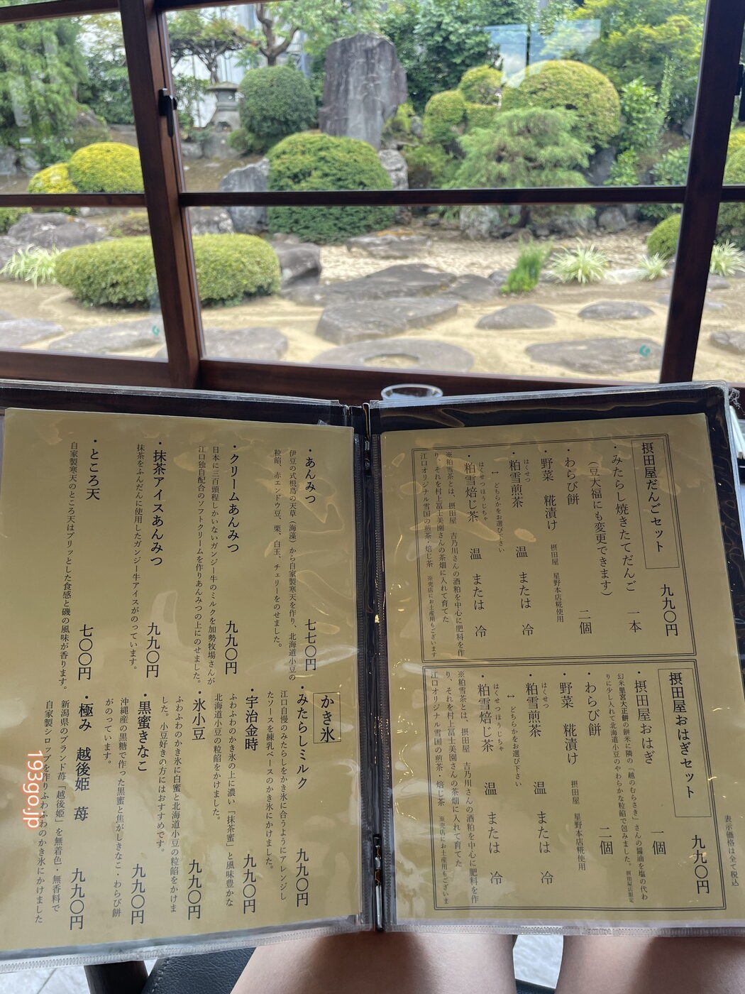 庭園を眺める喫茶メニュー
