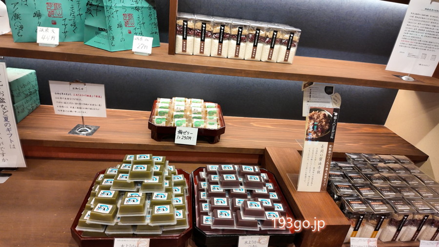 日本庭園を眺めながら甘味を楽しめる喫茶コーナーや、摂田屋店ならではの商品に加え江口だんごの定番商品が取り揃う。