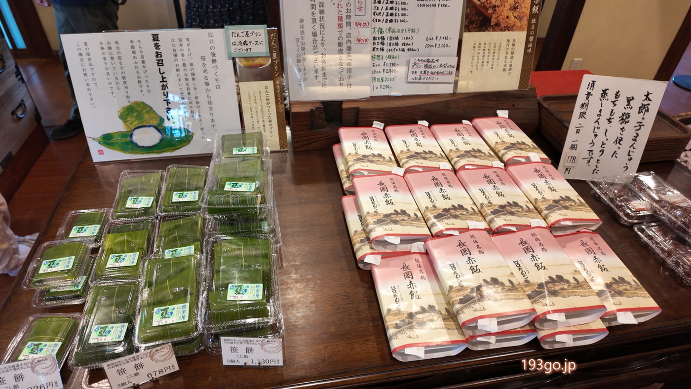 雪国新潟県長岡市の古民家を再生した店舗で笹だんご・串だんご・一升餅・大福などの餅菓子を製造販売。