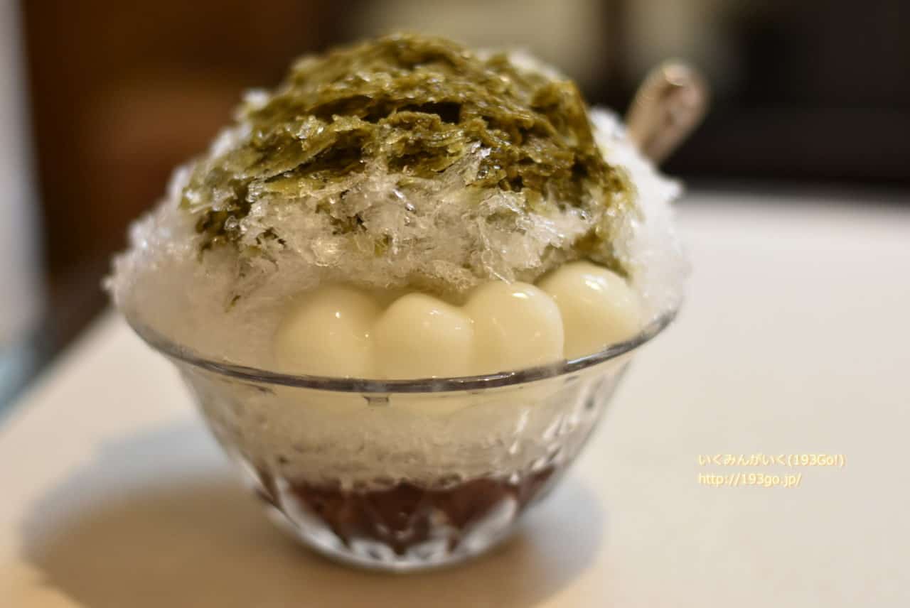 こんもり盛られた氷にほうじ茶がたっぷり浸みて、