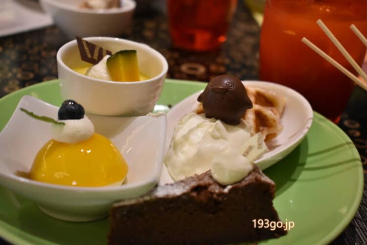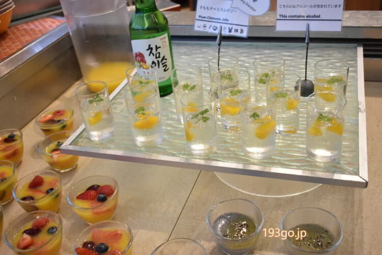 さらにスイーツは、唐辛子のガトーショコラや熱々のホットク、マッコリを使ったチーズケーキにかぼちゃのプリン、すもものチャミスルゼリーなどアルコールとのコラボも面白い。