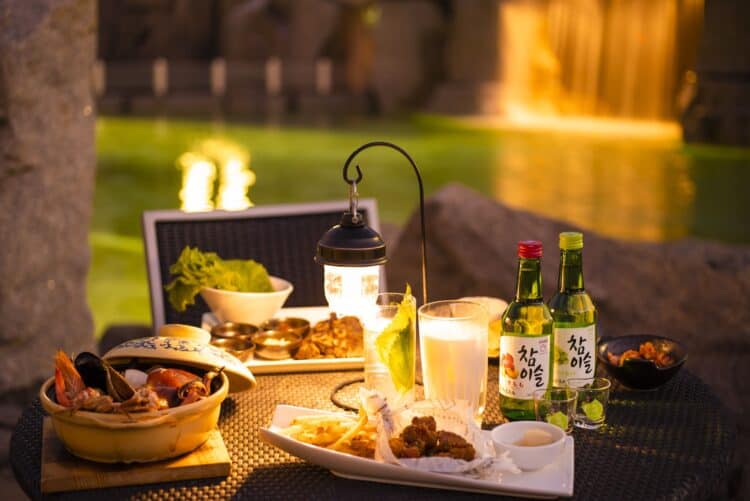 現地のホテル「シェラトングランド仁川」で提供されているレシピを再現した料理がズラリと並ぶビュッフェ、話題の韓国スイーツが堪能できるカフェ、更にガーデンでは韓国風居酒屋「ポチャ」が登場。また、韓国焼酎ソジュやスキンケア「メディヒール」などの特典を選んで「渡韓ごっこ」を満喫できる宿泊プランも用意されている。
