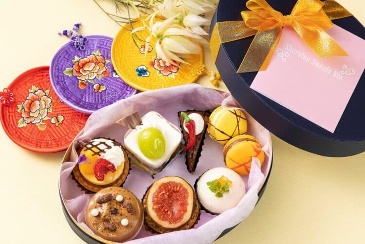 マンゴーマッコリチーズケーキ:700円、トゥンカロン:800円、ダルゴナコーヒーティラミス:700円や、チーズダッカルビパン:450円、マヌルパン:380円、可愛らしい韓国スイーツを集めた“#シェラトンスイーツボックス”~11月限定バージョン~:2,800円など。 店内で楽しんだり、テイクアウトも!