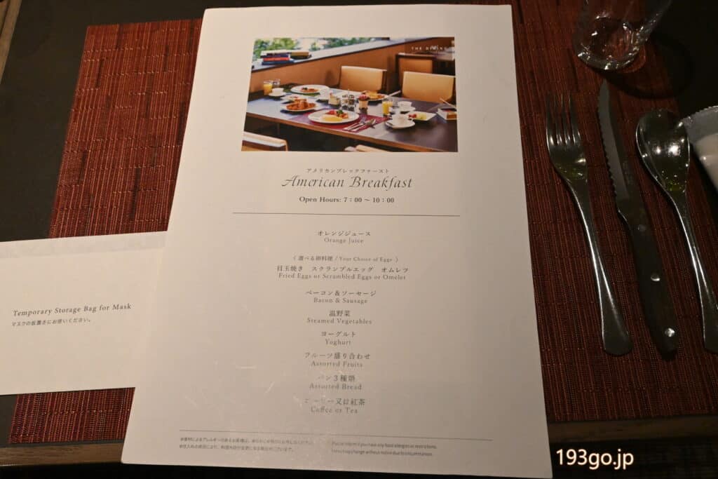 現在はアメリカンブレックファスト:2,783円(大人1人、税・サ込み)